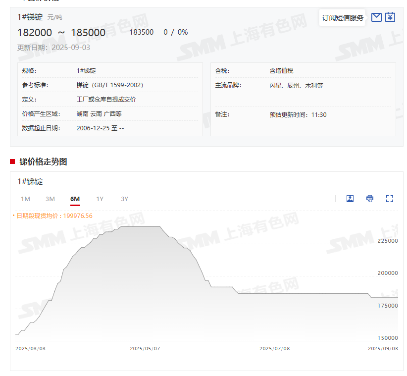 此外,SMM1#锑锭今年上半年的日均价为187867.52元/吨,与2024年上半年的日均价104410.26元/吨相比,上涨了83457.26元/吨,同比涨幅为79.93%。