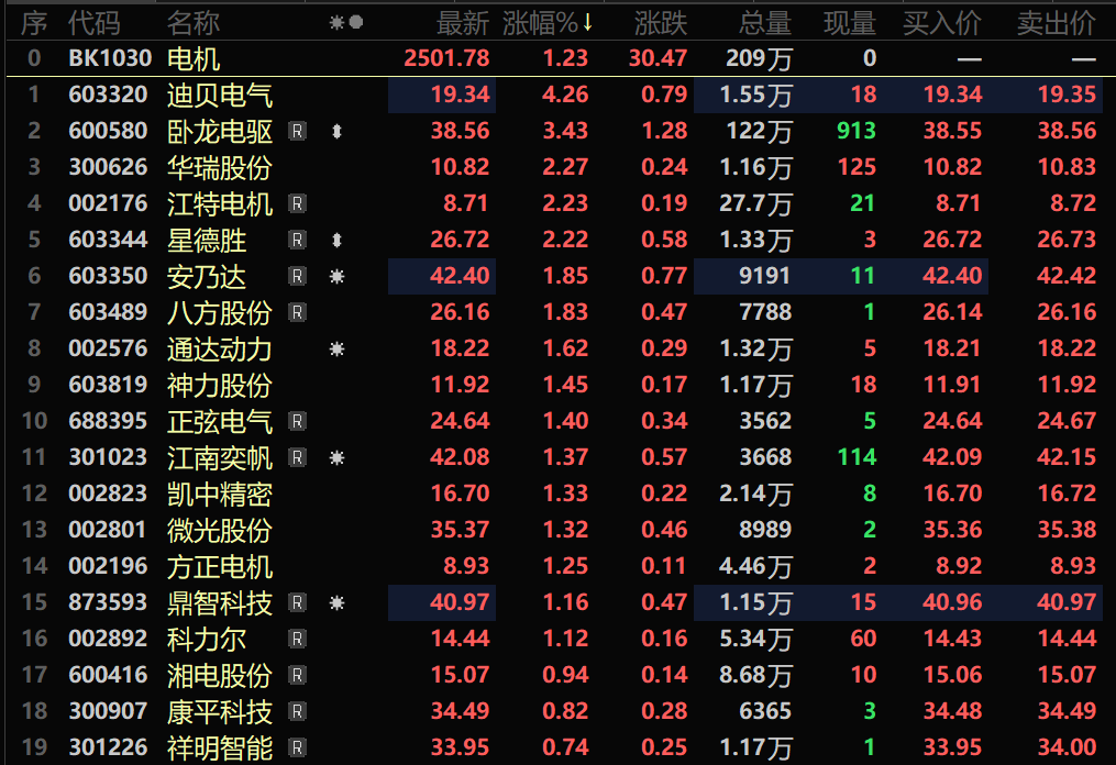 9月4日电机板块逆势上涨,截至4日9:54分,电机板块涨1.23%,个股方面:迪贝电气涨超4%,卧龙电驱、华瑞股份、江特电机以及星德胜等涨幅居前。从消息面来看,多重利好因素共同推动了电机板块的上涨。首先,消费端政策持续发力,多地启动新一轮汽车消费券发放或补贴活动,如宁波市9月1日启动总额6000万元的汽车消费券发放,济南市同日开启下半年第三轮汽车消费补贴,重庆市还追加1.35亿元预算资金用于2025年10月汽车及电动自行车以旧换新补贴。汽车消费的提振,直接带动了作为核心零部件的电机的市场需求预期。其次,人形机器人领域再现亿元级订单,而电机是人形机器人的关键部件,这一领域的订单增长也为电机行业带来了新的增长动力。综合政策支持以及市场对电机需求的良好预期等因素,电机板块在9月4日实现了逆势上涨。