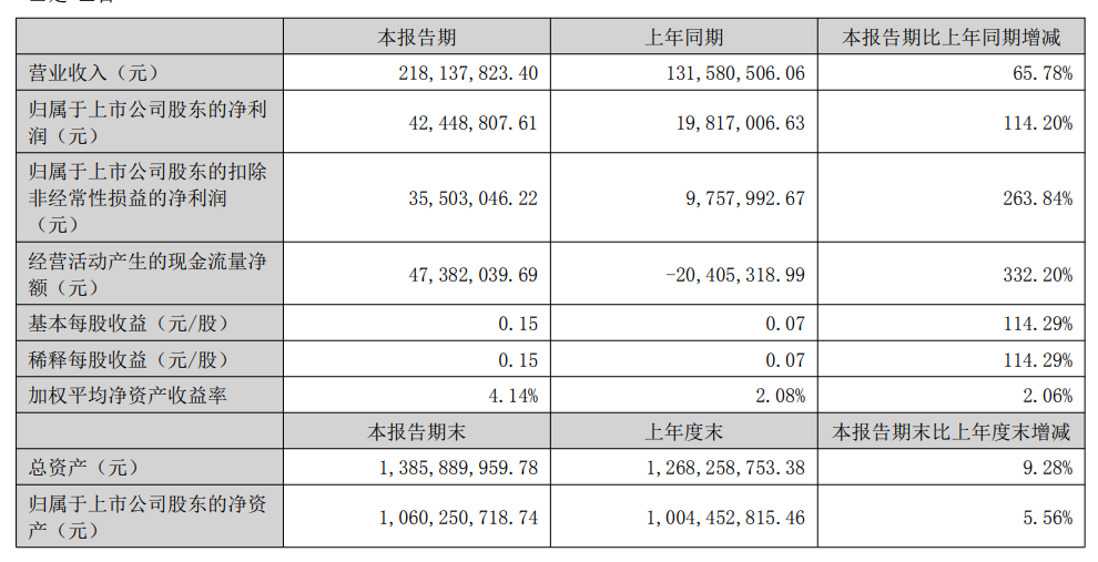 晓程科技8月26日披露2025年半年度报告显示:2025 年上半年,公司继续围绕“黄金开采及销售+光伏发电+集成电路设计”三大业务板块,以黄金矿产资源开采及销售为主业,持续优化运营管理,推进重点项目落地,以业务高质量发展为出发点,实现"资源开发+清洁能源+科技创新"协同共进。 报告期内,公司实现营业收入 218,137,823.40 元,较上年同期增长65.78 %,归母净利润42,448,807.61 元,同比增长 114.20 %;扣非归母净利润 35,503,046.22 元,同比增长263.84%,主要得益于黄金生产量的同比增长及销售收入的增加。2025 年下半年,公司将继续强化生产管理,优化采矿工艺、推进智能采选系统升级,以保障黄金开采业务平稳开展;聚焦矿石品位、能耗等维度严控成本,提升生产效益。同时紧抓金价机遇,动态跟踪金价波动趋势,优化销售策略,积极推进新选厂的建设,稳固提升开采效率,以确保公司的正常高效运营。