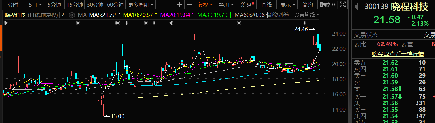 9月4日,晓程科技股价出现下跌,截至4日13:27分,晓程科技跌2.13%,报21.58元/股。
