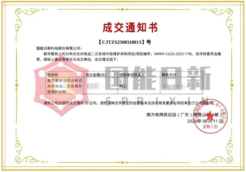国能日新成功中标南网综能分布式光伏电站二次系统升级维护物资采购项目。此次中标,标志着国能日新成为首家为南网综能公司提供II型边缘网关技术支持的企业,为南网综能分布式光伏运行管理规范性与安全性的提升具有重要意义。
