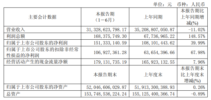 包钢股份近日发布2025年半年度报告显示:今年上半年,面对钢铁行业的严峻形势,公司锚定钢铁主业长期稳定盈利目标,全力以赴调结构、拓市场、提效率、降事故、强绩效、降成本、优投资、稳质量,积极想对策、抓落实,保持了企业生产经营稳定顺行。1-6月,产铁703.03万吨,产钢749.47万吨,生产商品坯材694.17万吨,稀土精矿(REO=50%)21.11万吨,萤石精矿39.38万吨;实现营业收入313.29亿元;实现利润总额1.68亿元,同比增长148.57%;归属于上市公司股东净利润1.51亿元,同比增长39.99%。