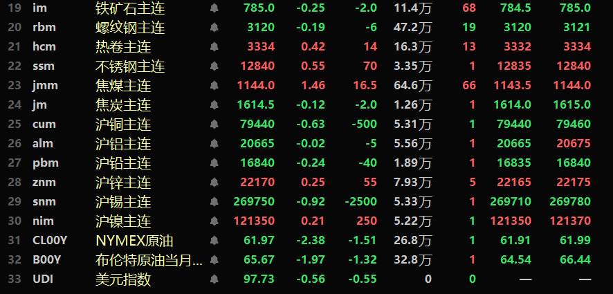隔夜黑色系涨跌互现,铁矿跌0.25%,不锈钢涨0.55%,螺纹钢跌0.19%,热卷涨0.42%。双焦方面:焦煤涨1.46%,焦炭跌0.12%。
