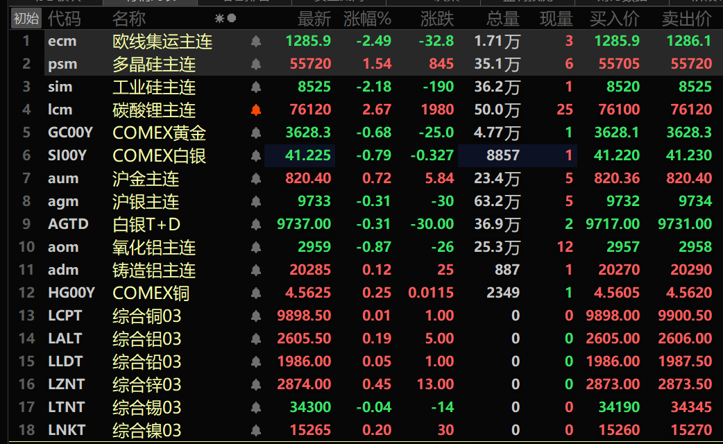 此外,铸造铝主连期货涨0.12%,氧化铝主连跌0.87%。碳酸锂主连涨2.67%,工业硅主连跌2.18%。多晶硅主连涨1.54%。