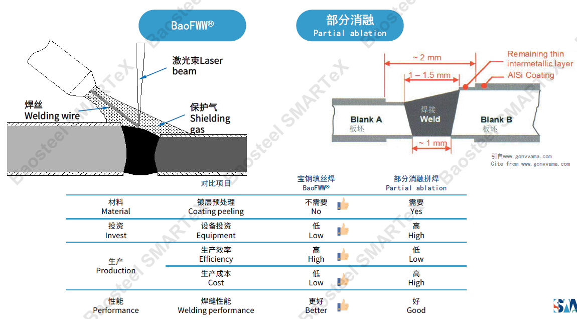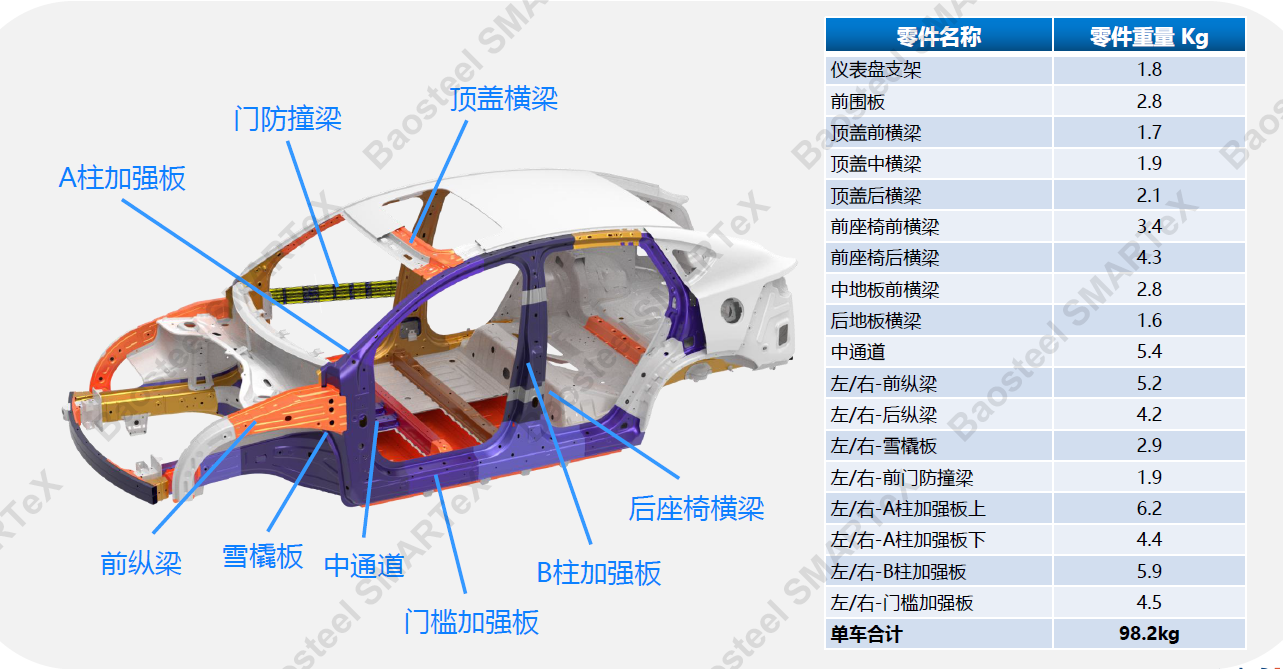 材料+技术+解决方案:热成形材料、填丝焊技术BaoFWW®、一体化零件设计、热成形技术。