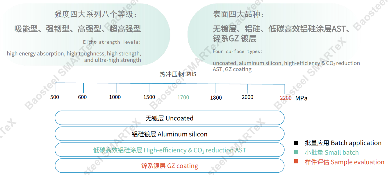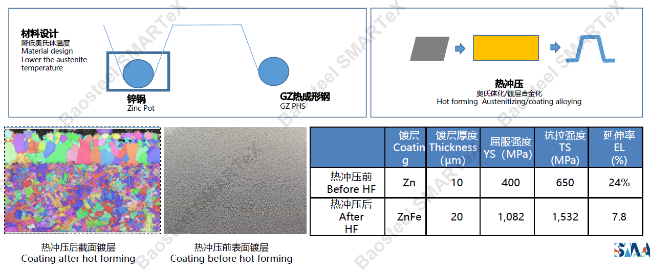 通过基板材料+镀层+热冲压工艺变化,实现直接热冲压成形