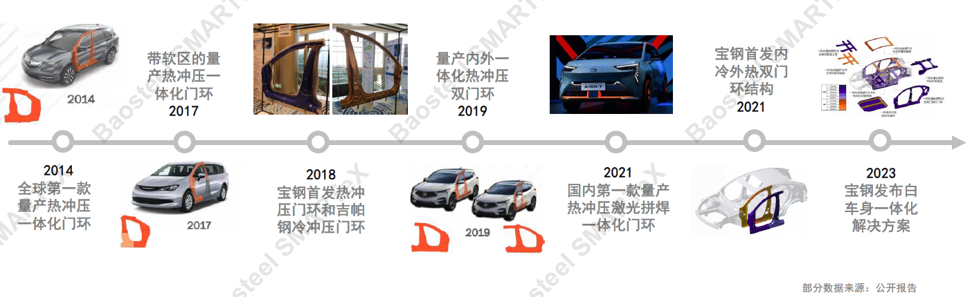 国内更快:最早2021年量产应用,后续推广较快,截止目前已有30款以上车型量产应用了一体化热冲压门环