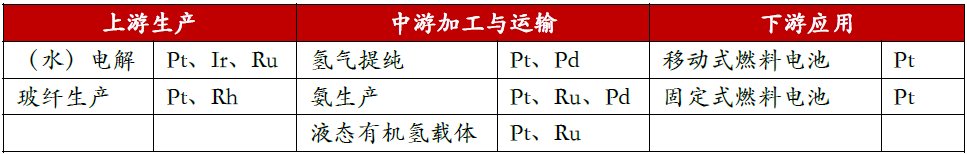 绿氢制备:铂基催化剂用于电解水制氢,2025年全球绿氢产能达10GW,新增铂需求3吨;