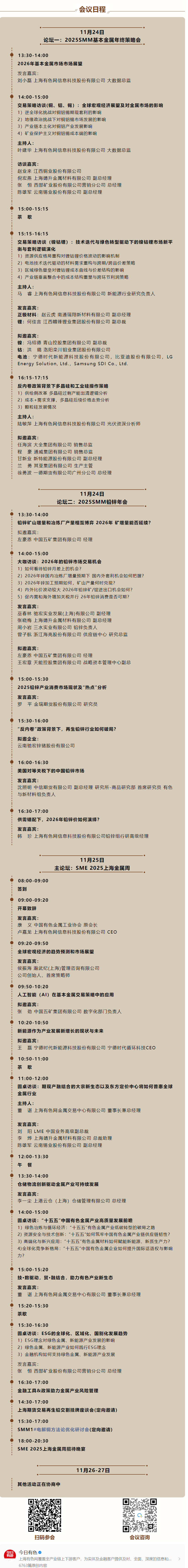 为适应全球贸易新格局和我国经济发展新需要,加快推进上海市打造国际大宗商品贸易中心、国际定价中心、风险管理中心、供应链枢纽节点的进程我司拟于2025年11月24-27日举办2025上海金属周。