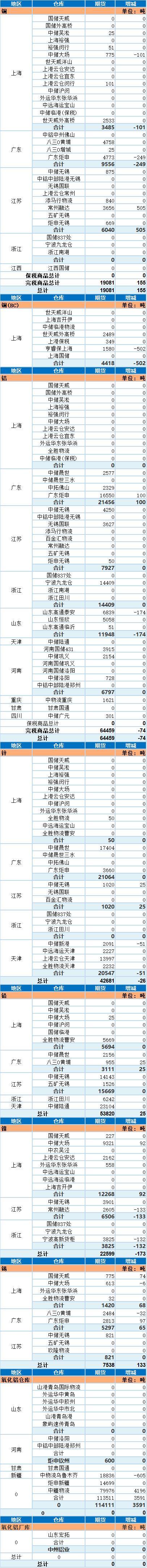 SMM网讯:以下为上海期货交易所9月9日金属库存日报: