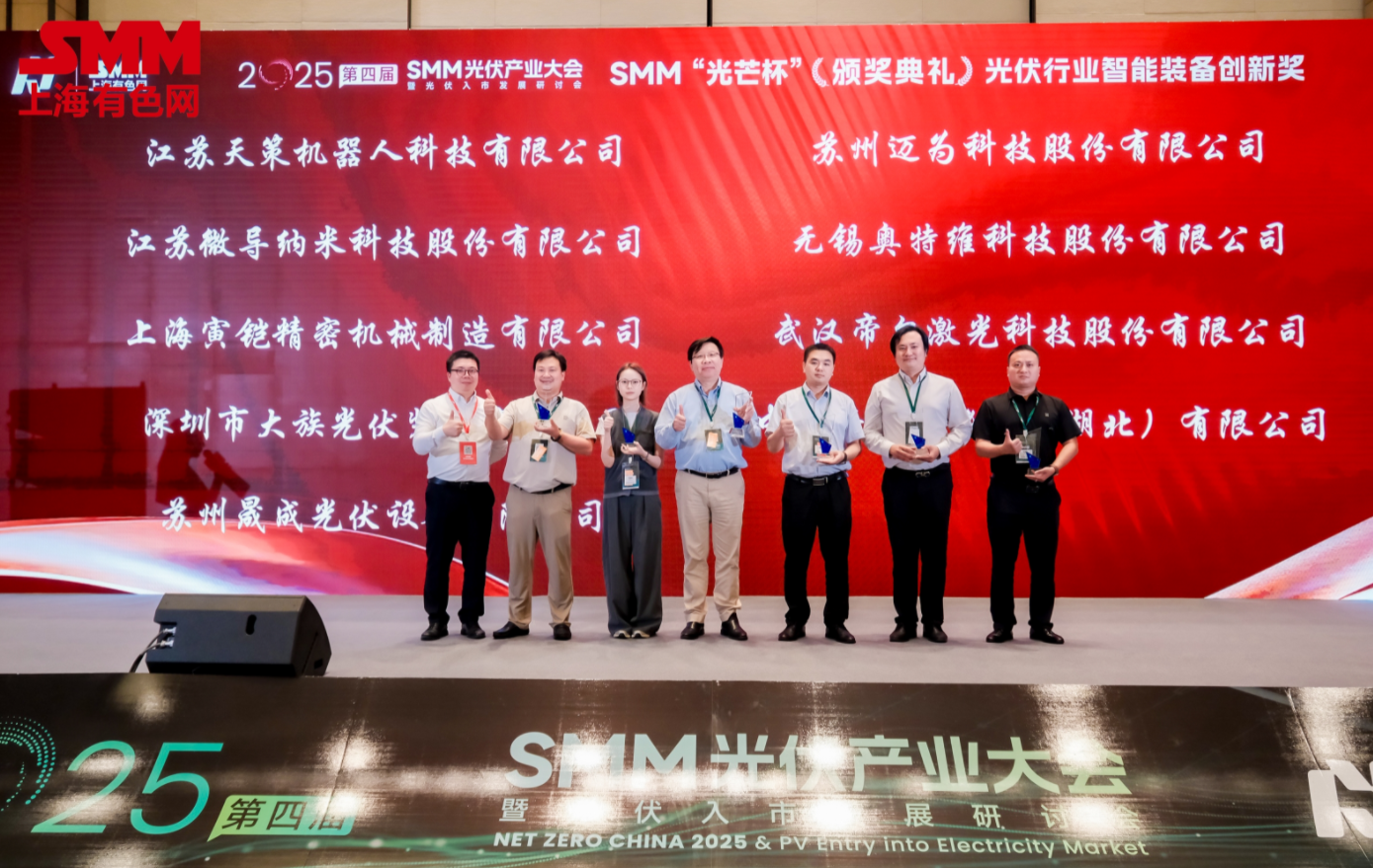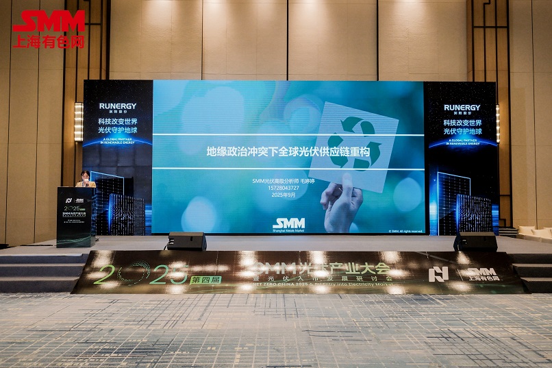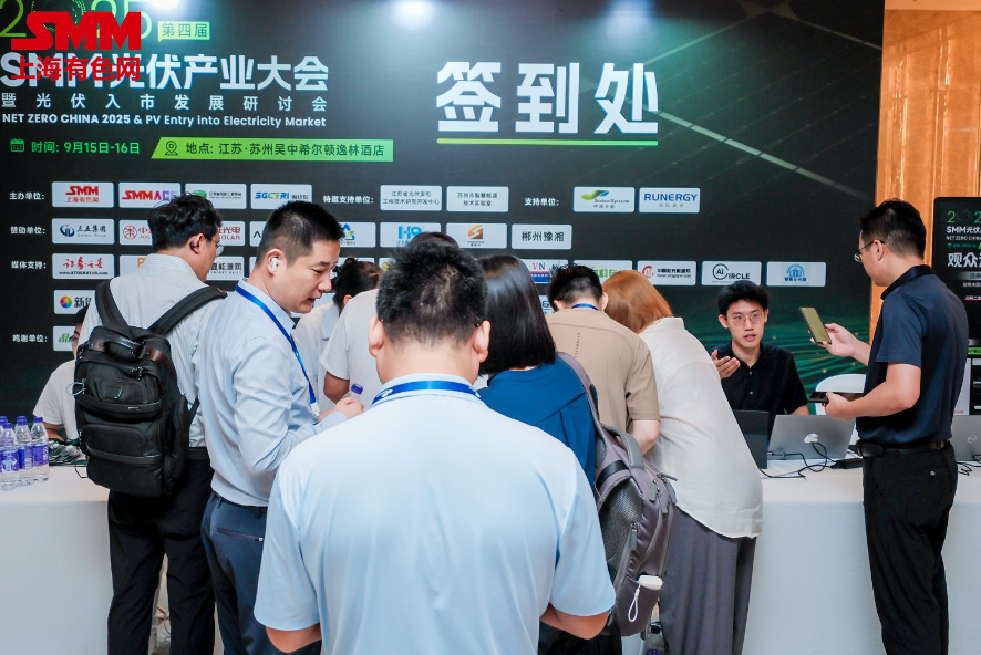 9月15日,由上海有色网信息科技股份有限公司、山东爱思信息科技有限公司、江苏省电机工程学会电力市场专业委员会、国网(苏州)城市能源研究院有限责任公司联合主办的NETZEROCHINA2025SMM(第四届)光伏产业大会隆重召开!SMM将对此次大会全程进行视频、图片以及文字直播,敬请关注!