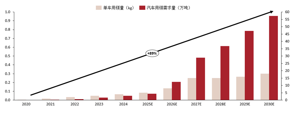 《节能与新能源汽车技术路线图2.0》明确提出,我国将大力推动镁合金材料在汽车领域的应用,并设定了明确的单车用镁量目标:2020年达到15kg,2025年达到25kg,2030年提升至45kg。