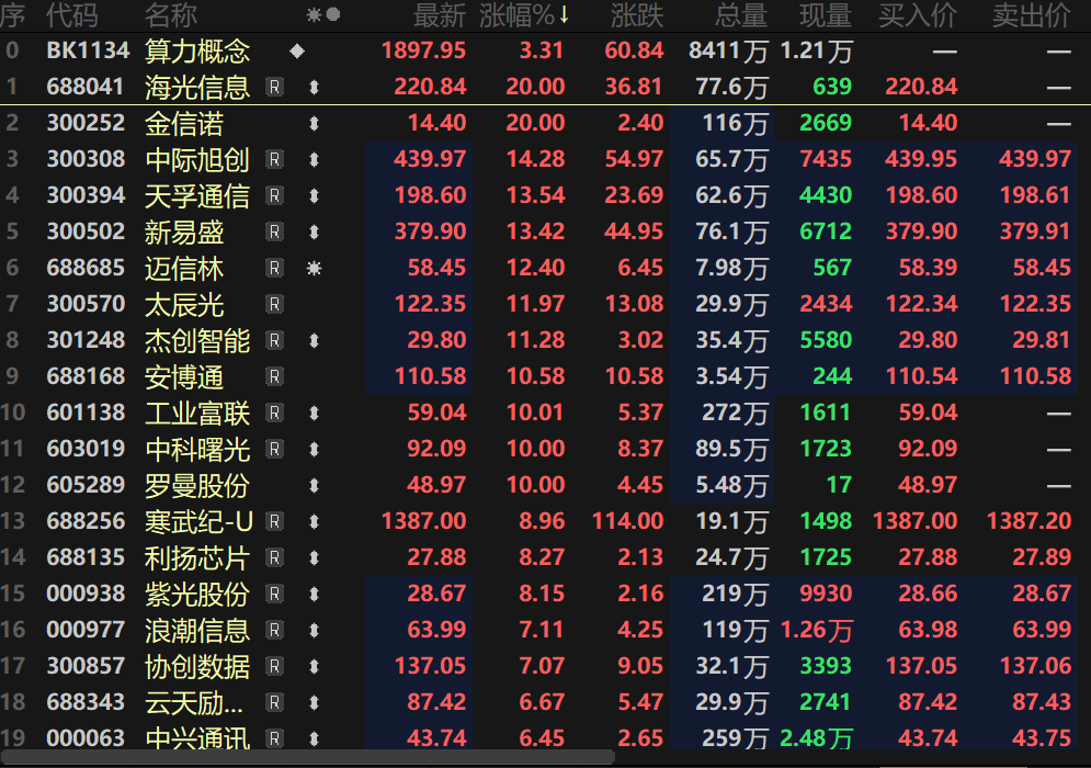 除了半导体板块,算力概念板块今日也一同拉涨,指数盘中涨逾3%。工业富联、中科曙光、罗曼股份等个股涨停,中兴通讯、宏景科技等纷纷跟涨。消息面上,OpenAI据悉已签署一项协议,将在大约五年内向甲骨文购买价值3000亿美元的算力。
