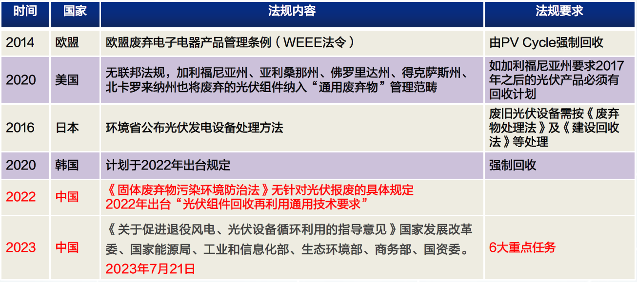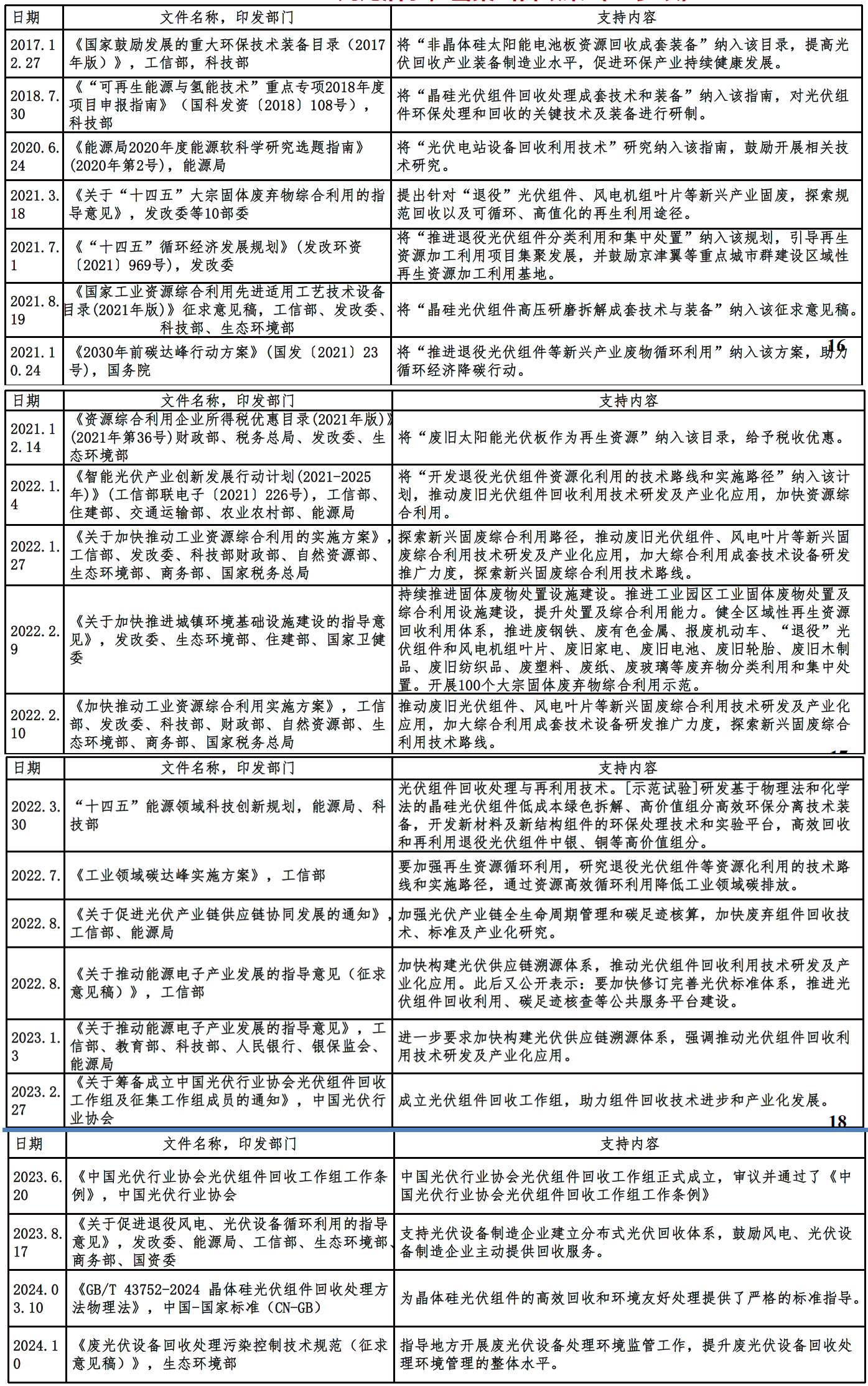 【生态环境部2024年1月,《固体废物分类与代码目录》,光伏组件生产、技改、退役等过程中产生的废弃光伏组件】