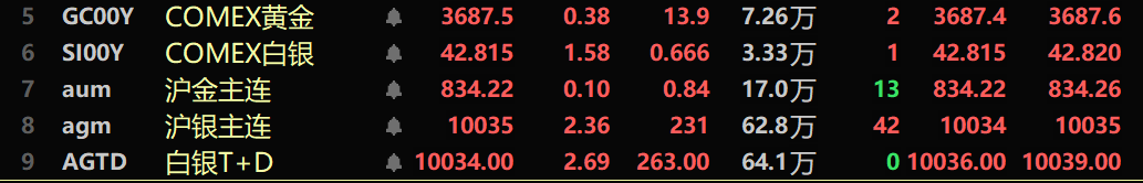 美国上周初请失业金人数超预期、近期美国大小非农等数据不及预期等,提振了美联储九月降息预期,降息预期升温提振贵金属的市场表现;美元指数近期走弱,目前徘徊在97.6附近;中东以及俄乌冲突再度升级等使得市场避险需求增加以及全球央行加速去美元化等均给予贵金属价格以支撑,截至9月12日19:31分,COMEX黄金涨0.38%,报3687.5美元/盎司;COMEX白银涨1.58%,报42.815美元/盎司,盘中刷新自2011年9月以来的新高至43.04美元/盎司;沪金主连涨0.1%,报834.22元/克;沪银主连涨2.36%,报10035元/千克,盘中刷新上市以来的历史新高至10065元/千克;白银T+D涨2.69%,报100034元/千克,盘中刷新上市以来的历史新高至10048元/千克。
