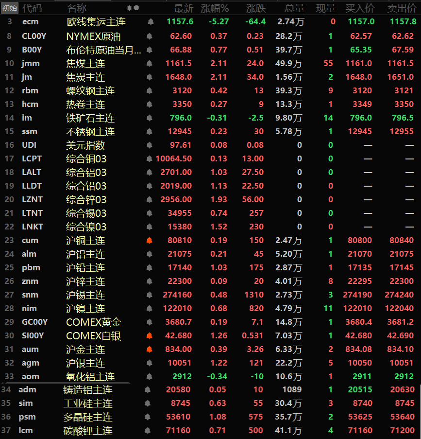 金属市场方面: