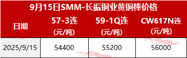 【SMM价格】2025年9月15日长振黄铜棒价格