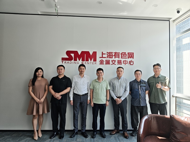 大冶有色在8-9月“质量月”期间,公司铜产品部联合两家工厂及营销负责人主动走访下游客户与上海有色网(SMM),零距离获取市场对“大江牌”阴极铜的质量反馈与客户需求。其中,9月11日上午,大冶国贸总经理李立、大冶国贸铜部经理余章毅、大冶有色冶炼厂电解主任高玉利、大冶有色冶炼厂铜库主管谢安迪、阳新弘盛营销部经理邱子涵一行到访(SMM)进行考察交流,上海有色网金属交易中心董事长兼总经理董谌 、SMM大数据总监叶建华 、SMM铜高级分析师耿志瑶、SMM 铜高级分析师慈恒洋、SMM营销铜事业部总经理马瑶、SMM营销铜事业部副总监任杰等热情接待了来访嘉宾。