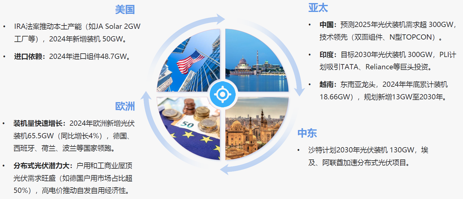 •美国/欧洲:利用IRA等政策补贴建厂,规避关税壁垒(如隆基在美建5GW工厂)。