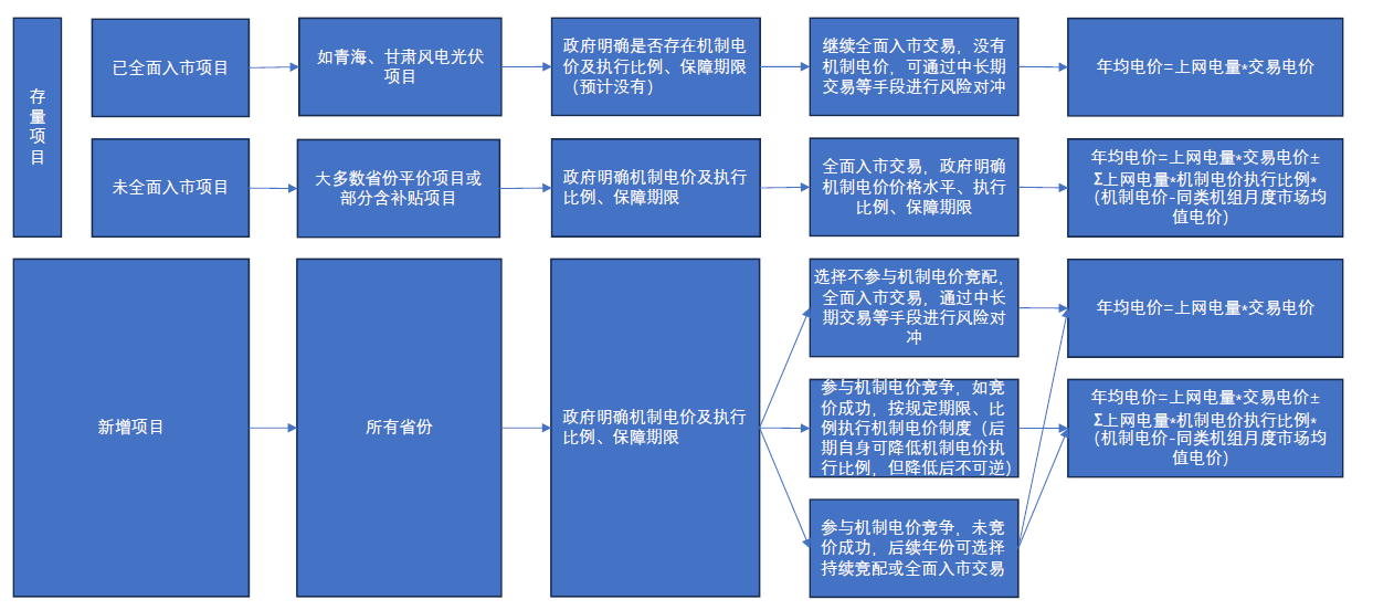 1) 新并网的新能源项目(指风电、光伏项目)上网电量原则上全部进入电力市场,上网电价通过市场交易形成;
