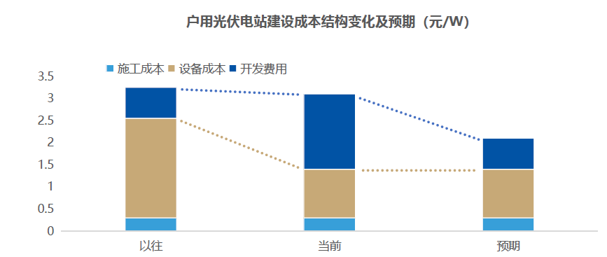 近年来光伏设备成本的下降显著,但前期开发费用占建设成本的比例相对较高,存在较大的压价空间。