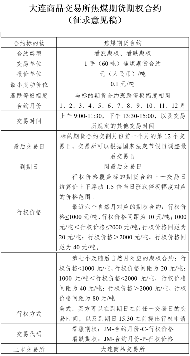 大商所9月17日发布《关于就焦煤期货期权合约公开征求意见的公告》。