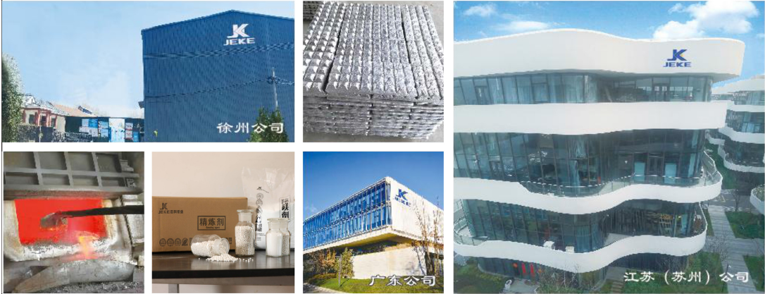 杰科铝业集团有限公司(徐州杰科铝业有限公司;江苏(苏州)杰科铝业有限公司;广东杰科铝业有限公司;江苏科铸新材料有限公司公司)是一家专业生产研发各种金属熔剂、铝合金元素添加剂、各种铝基中间合金、铸造铝合金、及熔铝用配套设备的专业企业,公司中国有色金属工业协会、再生金属分会理事单位,企业拥有专业研发队伍并联合国内多家科研院所、行业专家进行铝熔铸技术的开发,并特聘多位行业专家作为公司技术顾问,为国内大中型铝加工行业提供熔铸辅料及技术支持。