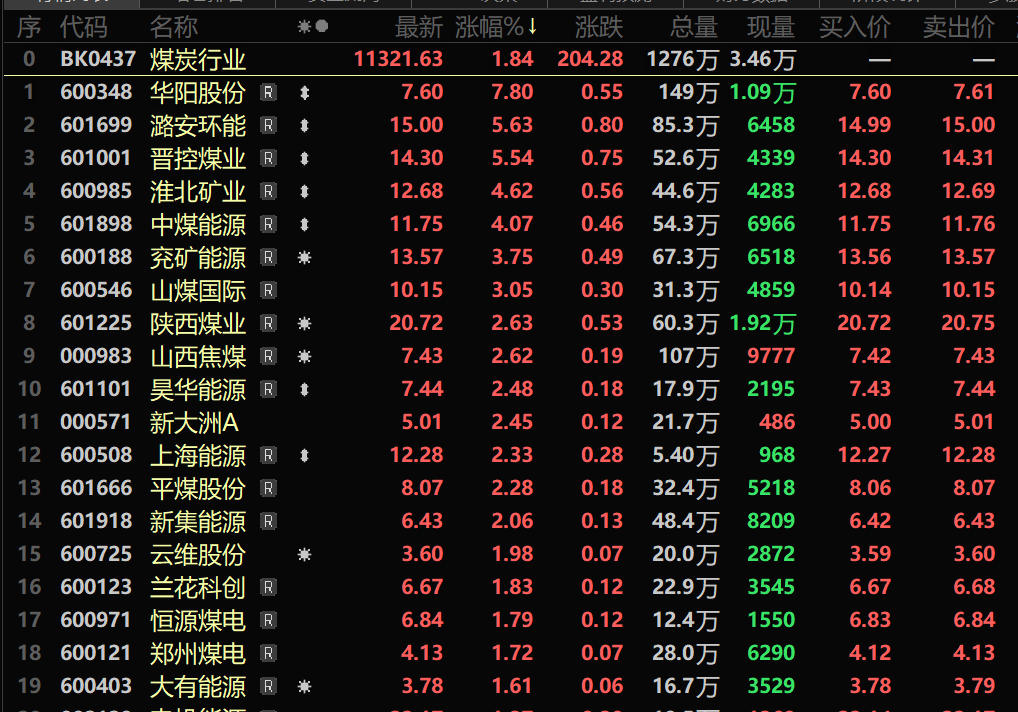 部分地区动力煤价格先行回暖提振了市场对煤炭板块的信心,叠加“金九银十”旺季及国庆节前下游补库需求预期,电厂、化工企业备货推升现货紧俏;供给端减少市场供应压力政策发酵与大秦铁路秋季检修(10月7日启动)预期,进一步强化“需求增、供给缩”的改善逻辑。此外,尽管2025年煤炭行业盈利整体承压,但2025年半年报显示,有多家上市煤企发布中期分红方案,高股息率吸引了不少投资者的青睐;这一系列因素推动煤炭行业板块在9月19日出现逆势上涨,截至19日收盘,煤炭行业板块涨1.84%,个股方面:华阳股份涨7.8%,潞安环能、晋控煤业、淮北矿业以及中煤能源等涨幅居前。