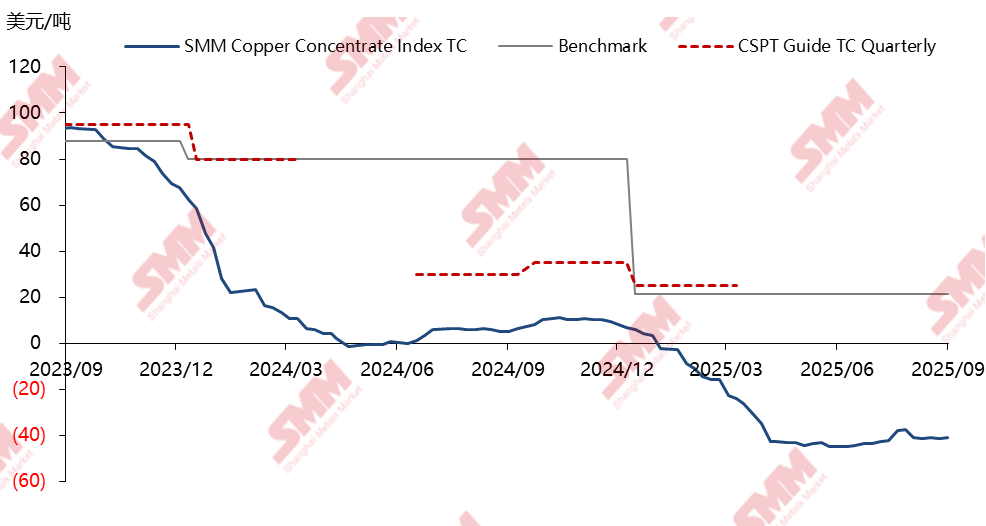 现货/长单TC走势:中国铜冶炼厂在今年的铜精矿现货市场上展现出韧性,今年SMM铜精矿现货TC指数仍然没有突破-45美元大关,而且从近期矿山与冶炼厂的现货招标情况上看也有好转的迹象。在即将到来的年终谈判前,SMM认为中国冶炼厂也会持续保持现货TC回升的势头,以更好地在谈判中搏得一个更有利的结果,因此SMM认为这段时间现货TC可能维持在-40美元至-45美元区间。在长单谈判之后,中国冶炼厂可能会为了冬储和春节生产做准备而加大现货采购量,另外,有个别大厂已经开始在寻找今年12月装运明年2月或3月到港的铜精矿现货,届时现货TC可能维持在-45至-50美元。SMM最新的全球铜精矿硫化矿供需平衡结果显示,2025年的平衡结果为-22.4万金属吨,另外鉴于年中谈判结果为0美元/干吨,则今年年底的谈判结果可能很难超过年中的结果。
