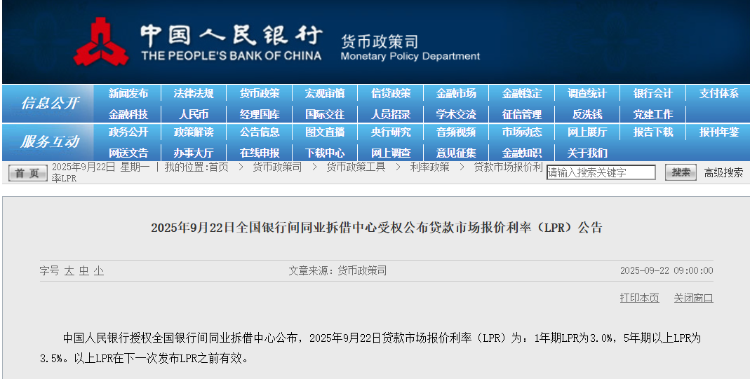 9月LPR报价出炉:5年期和1年期利率均维持不变