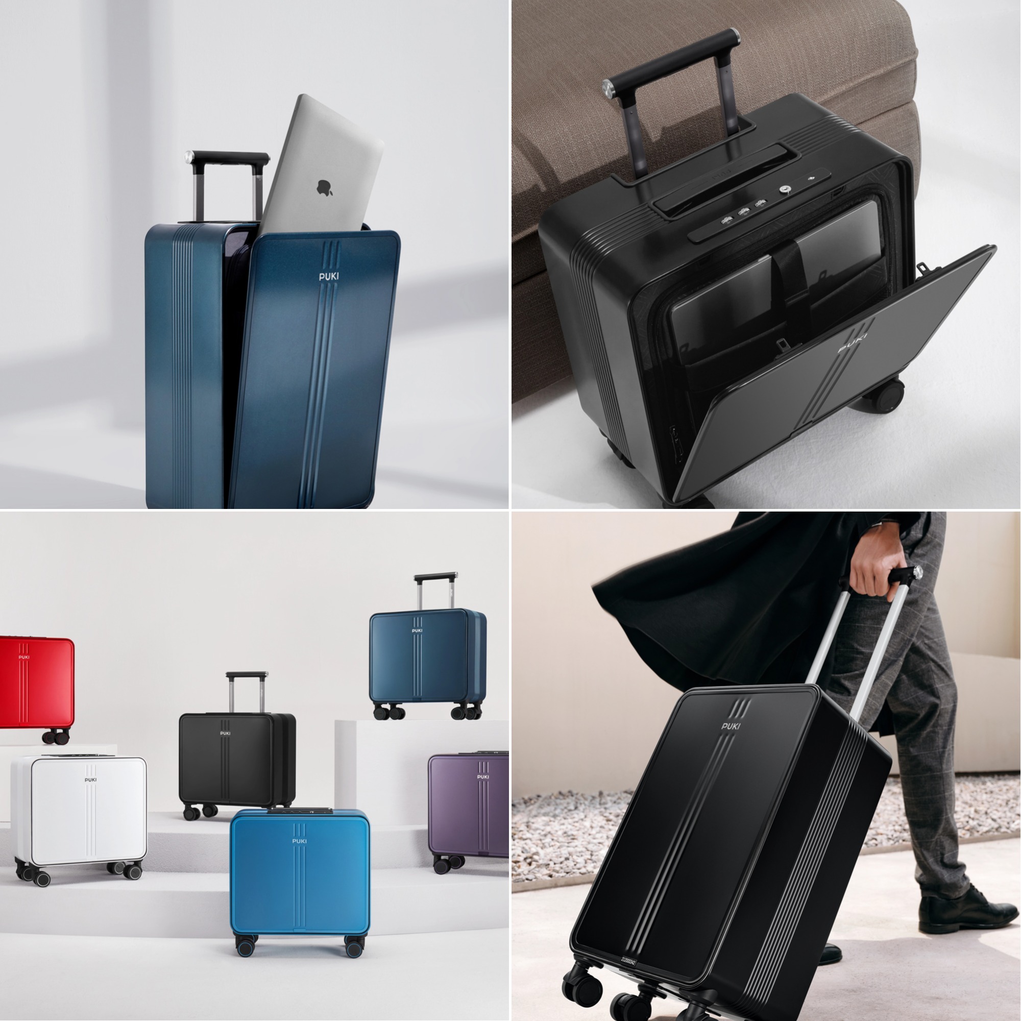 PUKI谱祺产品涵盖铝镁合金商旅箱、聚碳酸醋 (PC) 商旅箱以及背包、手提包、收纳包、旅行配件等。