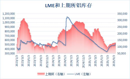 上期所公布的数据显示,9月19日当周,沪铝库存小幅下降,周度库存减少0.6%至127,734吨,位于逾三个月相对高位。