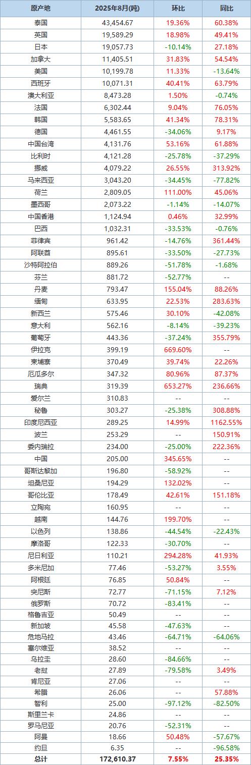以下为根据中国海关总署官网数据整理的2025年8废铝进口分项数据一览表: