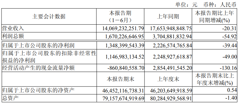潞安环能8月28日披露2025年半年度报告显示:2025年上半年,公司实现营业总收入140.69亿元,同比下降20.31%,主要系本期商品煤均价下降所致;归母净利润13.48亿元,同比下降39.44%;扣非净利润11.47亿元,同比下降49.00%。上半年生产经营目标高效达成。1-6 月,实现原煤产量 2863 万吨,商品煤销量 2525 万吨,商品煤综合售价为 516.20 元/吨。其中混煤产量为1279 万吨,混煤销量为 1261 万吨;喷吹煤产量为 1098 万吨,喷吹煤销量为 1083 万吨。实现商品煤销售收入 1,303,647 万元,销售成本 802,706 万元,销售毛利500,941万元。