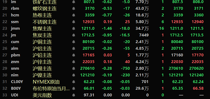 隔夜黑色系多飘绿,铁矿跌0.62%,不锈钢涨0.19%,螺纹钢跌0.53%,热卷涨跌0.77%。双焦方面:焦煤跌1.46%,焦炭跌0.95%。