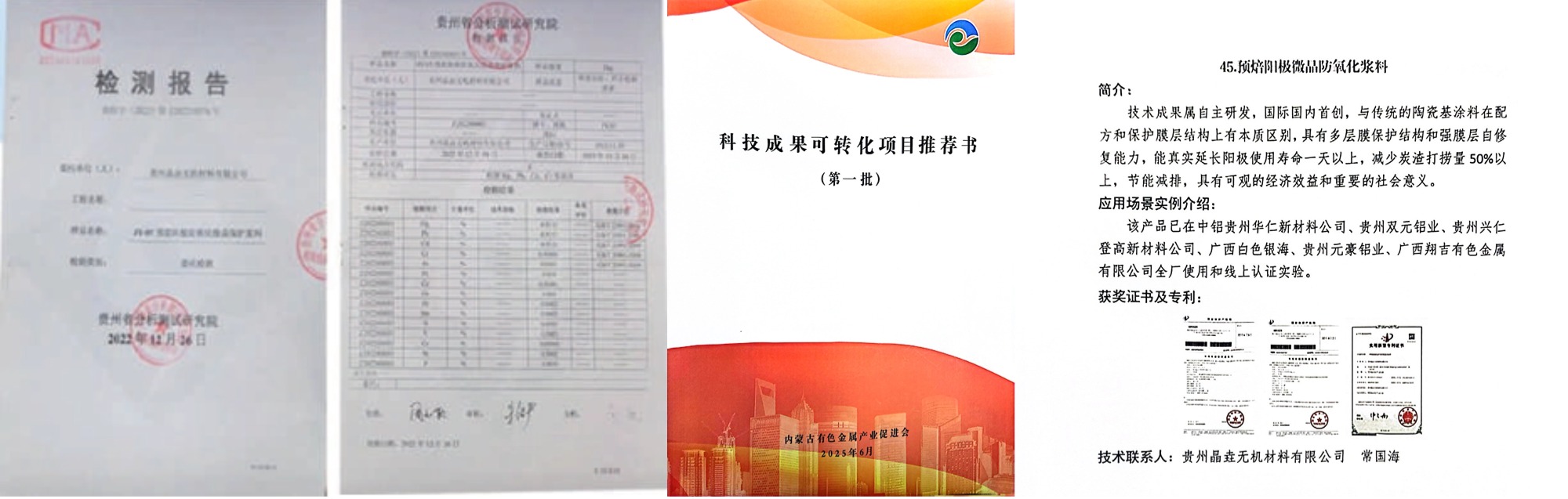 贵州晶垚无机材料有限公司,致力于冶金、化工领域防腐、节能减排技术、新型环保阻燃剂、玻璃封装、玻璃焊接保护的研发及技术推广应用的高新技术企业。目前立足西南地区铝生产加工产业链,与贵州大学等科研院所确立长期友好合作关系,共同建立了一支以博士、硕士研究生为主体的高水平研发团队和设备先进的研发实验室,具备从基础研究、产品开发、生产加工到工业化应用完备的研发能力。主要产品电解铝预焙阳极防氧化微晶保护浆料可显著降低阳极消耗,固碳效果明显,可降低电解铝生产过程固危废炭渣打捞量50%以上,阳极残极外型完整的同时提高电解电流效率达到节能减碳效果,可真实延长阳极使用周期一天以上,节能减排综合性能达到国内先进水平,为客户创造可观的经济效益,为铝产业绿色低碳可持续发展贡献力量,具有重要的社会效益。
