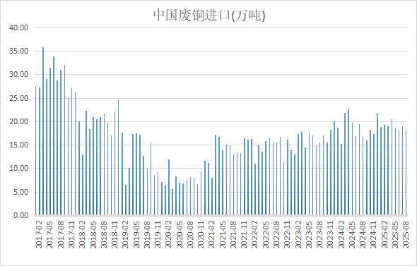 海关总署在线查询数据显示,中国8月废铜进口量为17.94万吨,环比减少5.6%,同比增加5.8%,1-8月中国铜废碎料进口量151.49万吨,同比下滑0.3%。其中,前两大供应国日本和泰国输送量都有不同程度回落,从美国进口量仅为543吨。