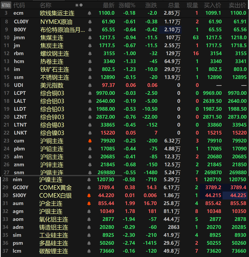 此外,碳酸锂主连跌0.16%,多晶硅主连跌2.74%,工业硅主连跌2.3%。欧线集运主连跌0.18%报1100。