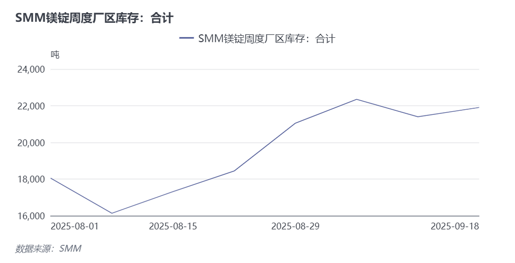然而,八月出口并未达到市场预期的高点,主要原因包括:一是七月下旬出台的“反内卷”政策推动镁价持续一个月高位运行,下游采购观望情绪加重;二是出口买单监管趋严,供需双方博弈加剧,抑制了部分实际需求,导致七月以来的新增订单趋于谨慎;三是欧洲等地区夏休后新订单停滞,整体需求有所放缓。