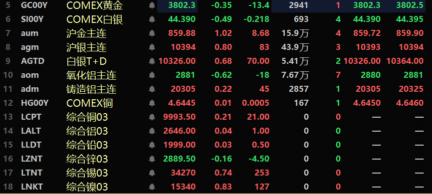 金属市场方面: