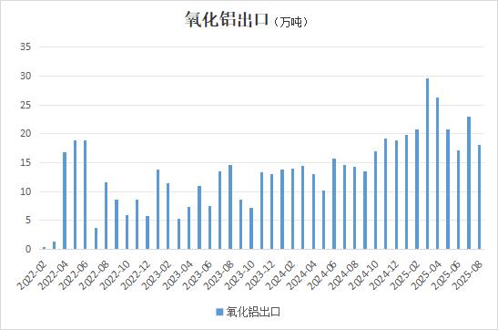 中国8月氧化铝出口环比下滑 同比仍表现为增加