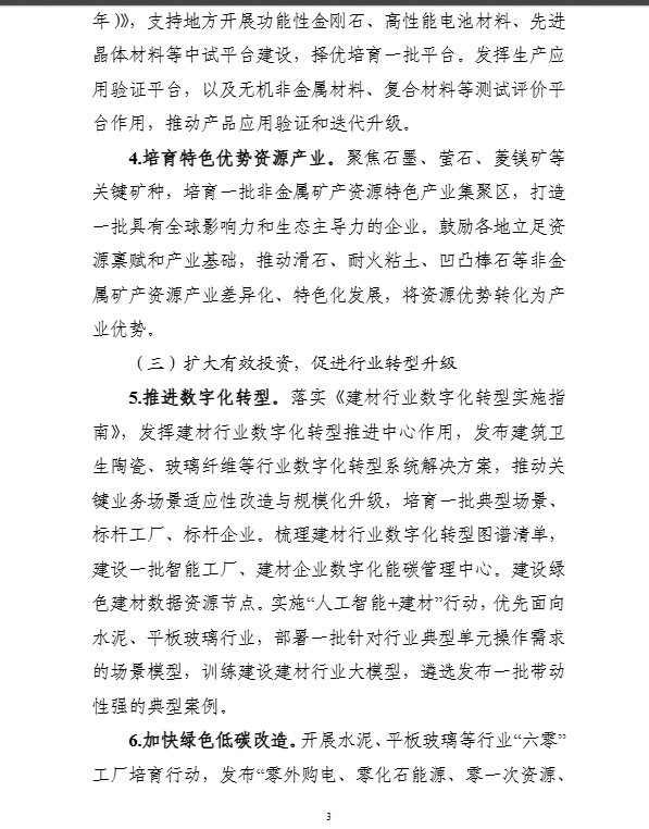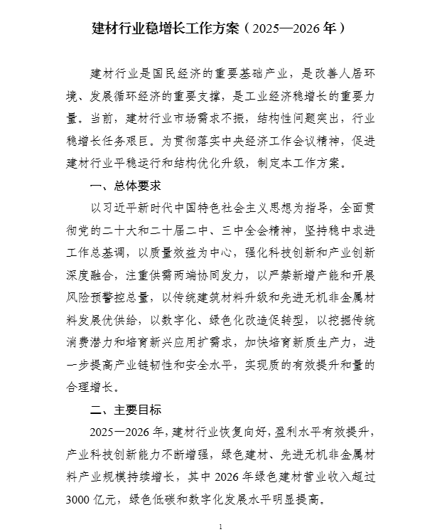 六部门关于印发《建材行业稳增长工作方案(2025—2026年)》的通知