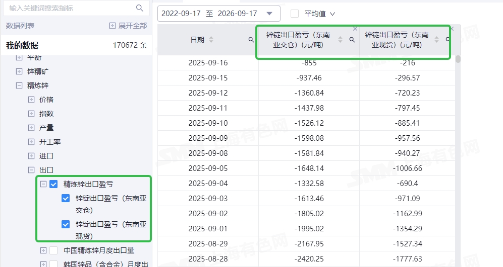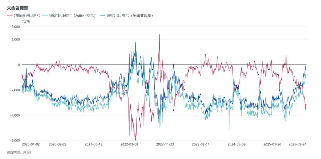 基本贸易商出口分现货出口和出口交仓两种形式,从目前海外的消费情况以及运输距离上来看,出口现货最优方案是出口到东南亚,根据SMM测算,按照东南亚现货130-150美元/吨来算,到2025年9月23日,锌锭出口盈亏(东南亚现货)亏损400元/吨以上,且现货出口需要贸易商前期有一定的海外客户群体,一定程度上也限制了贸易商的出口量;而交仓的话从库容和运输距离上来看,首选交仓是台湾高雄、新加坡、韩国等,根据SMM测算,加上交仓补贴后,锌锭出口盈亏(东南亚交仓)亏损在1100元/吨以上,锌锭出口尚未给到相关的机会,贸易商依然在等待出口窗口进一步扩大。