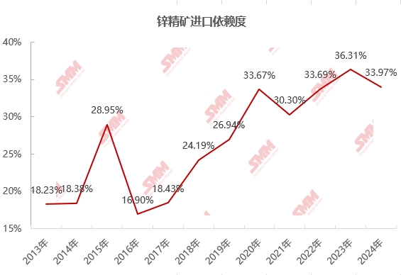 从LME国内注册交割品牌来看,主要注册品牌有双燕、慈山、葫芦岛、红烨、白银、豫光、驰宏、紫金、麒麟、火炬、南华、东岭。从目前的比值和出口盈亏上来看,单纯锌锭出口给不到相关的机会,但海外进口矿到国内目前亏损2000元/吨左右,低沪伦比值一定程度上限制进口矿流入,但国内冶炼厂进口矿依赖度逐步提升至将近40%,进口矿依赖度较高。