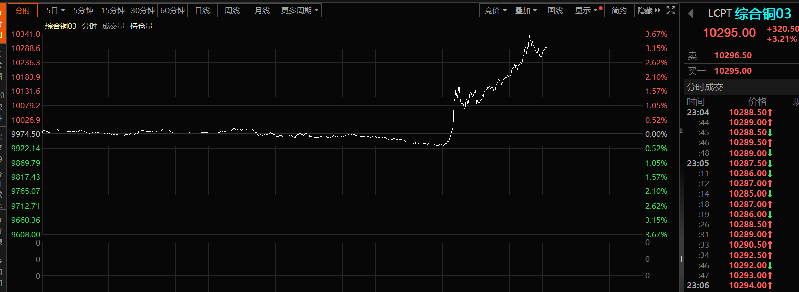 LME三个月期铜涨幅扩大至逾3%,至10,341美元,创2024年5月以来最高水平,此前印尼自由港宣布不可抗力。