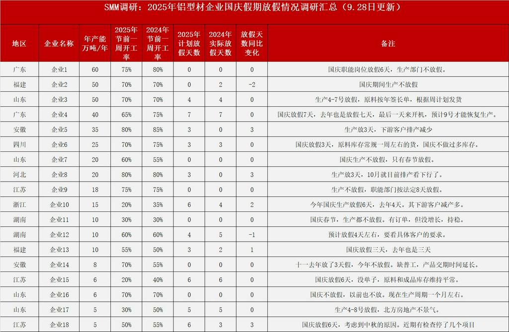》2025年国庆中秋假期铝型材企业放假安排一览【SMM分析】