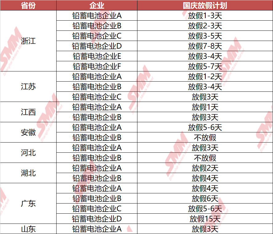 》中秋、国庆双节临近 2025年铅蓄电池企业放假计划如何?【SMM分析】