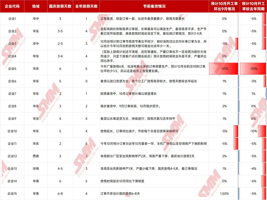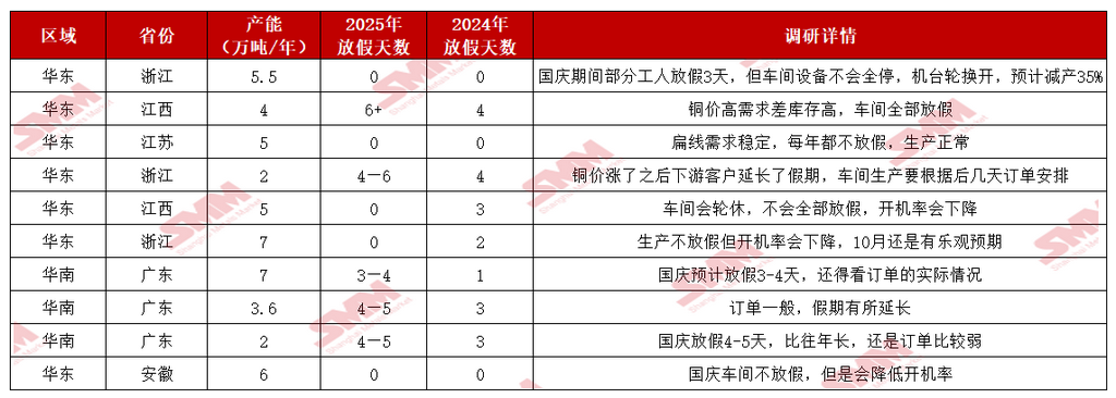 》2025年国庆假期铜加工企业放假调研——漆包线【SMM分析】