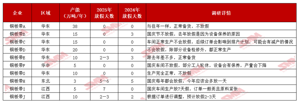 》2025年国庆假期加工企业放假调研——铜板带【SMM分析】