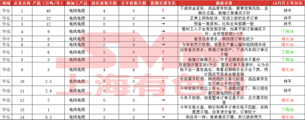 》2025年国庆假期铜加工企业放假调研——电线电缆 【SMM分析】